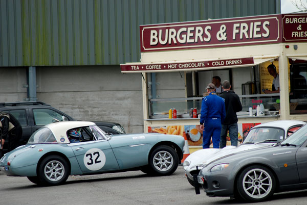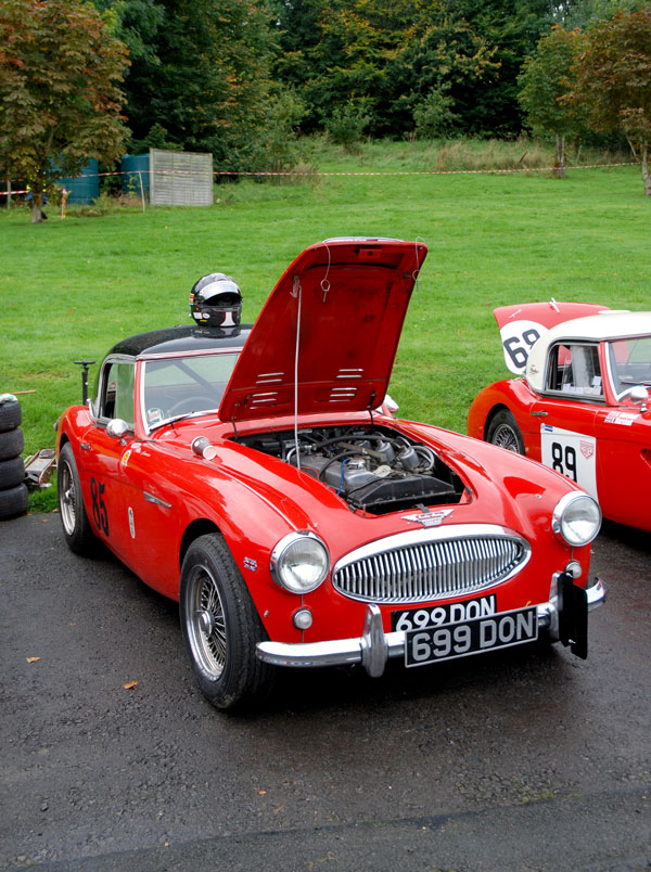 As far as the Healeysport championship was concerned, the top three places in the Sprite and Jensen Healey classes were decided before this final round, but there was only two points between the top three drivers in the Big Healey class (Trish C-P 77pts, Richard Mason 75pts and Paul Baker 75pts), even though Trish would not be running at Prescott. So there was all to play for at Prescott and the tension in the paddock was evident.