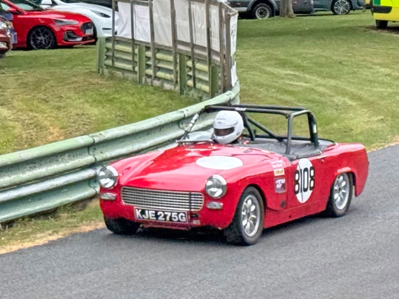 So the first timed run was held before lunch followed by our final run at about 3pm. In the Sprite class it was Paul Baker who took the top slot with a new personal best time of 67.33 a fraction ahead of Brett Dillon in 67.54 on his first run but managed to spin off the track on his second run trying to go faster. Max Shand could not beat his best practice time and finished with a 68.20 followed by father Garrow also in a new personal best time of 70.10 with Rob Owen getting down to 74.16 on his first run then spinning off the track on his second run.