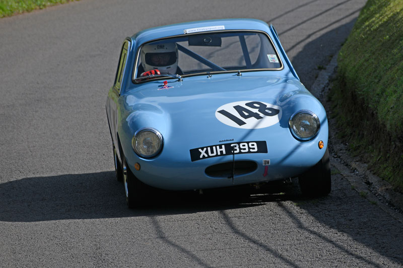 Practice in the Big Healey class saw Michael Berry open with a 68.22 which was already quicker than his own Healey 100 course record of 68.64. However Michael knew that records are only set during the timed runs and not during practice - so would have to repeat the run later. Richard Mason was next in 69.94 from Pete Walton in 72.49, then John Ducker in 74.07, Mervyn Coxon in 79.28 and Murray Shand (pictured right) had a few issues with passenger doors opening to finish practice with a best time of 81.88.